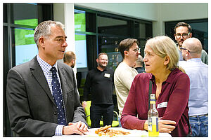 Neuerungen basierten auf Feedbacks vergangener Treffen, erstmalig wurden die aktuellen Absolvent:innen durch den Studiengangsprecher, Prof. Dawo geehrt. Frau Gläser berichtete über aktuelle Entwicklungen im Rahmen der Erstsemesterbegrüßung und Flash Talks förderten die Vernetzung der Alumnis.